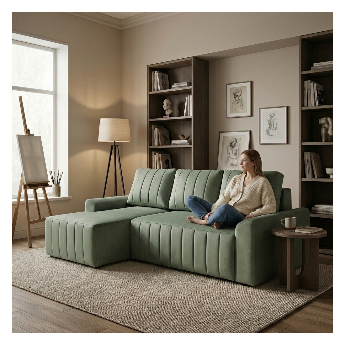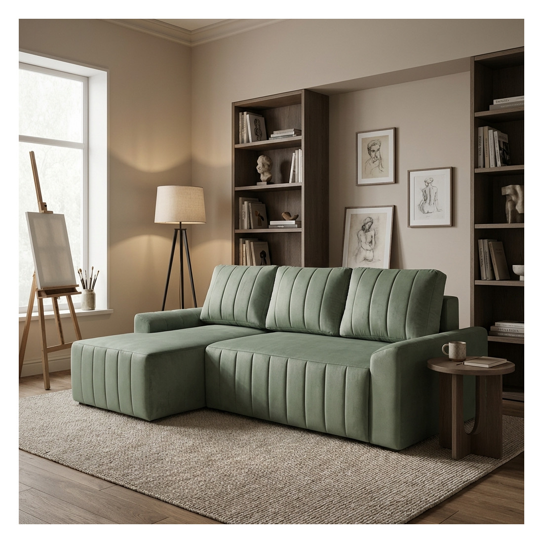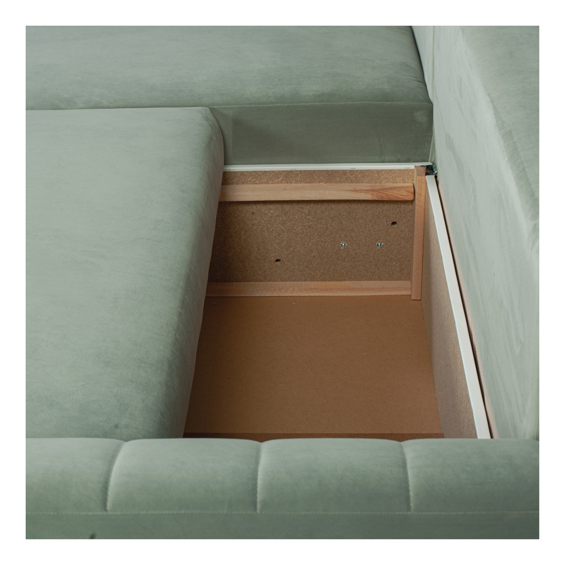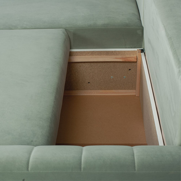 Coltar Extensibil Stanga Mark Living, Catifea Verde, 4 Locuri, Lada Depozitare, Extensie Doppelliege, 240 cm