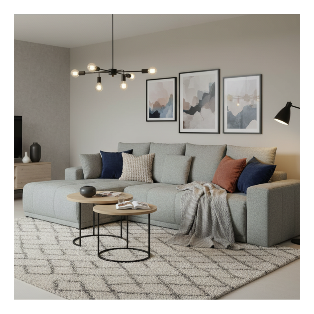 Colțarul extensibil Otis este o piesă de mobilier elegantă și practică, creată pentru a oferi confort și funcționalitate în orice spațiu de locuit. Fie că ai un apartament mic sau un living spațios, acest colțar se adaptează perfect nevoilor tale. Cu un design modern și atrăgător, colțarul extensibil Otis se integrează perfect în diverse stiluri de decor interior. PAL-ul și lemnul masiv utilizate în construcția sa asigură stabilitate și soliditate, oferindu-i astfel o durabilitate remarcabilă. De asemenea, aceste materiale conferă un aspect natural și cald, aducând un plus de eleganță și rafinament în orice încăpere. Extensia este o caracteristică specială a acestui colțar, permițându-vă să transformați rapid și ușor colțarul într-un pat confortabil. Metalul folosit pentru extensie este robust și rezistent, asigurând stabilitate și siguranță în timpul utilizării ca pat. Astfel, colțarul extensibil Otis devine o soluție practică și eficientă pentru oaspeții dumneavoastra sau pentru momentele când aveți nevoie de spațiu suplimentar pentru odihnă.