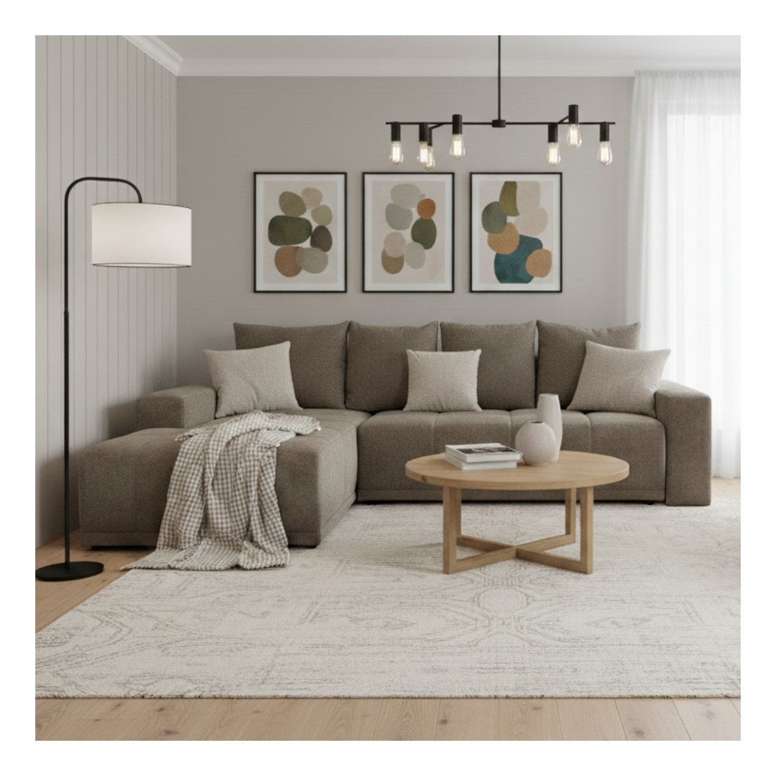 Colțarul extensibil Otis este o piesă de mobilier elegantă și practică, creată pentru a oferi confort și funcționalitate în orice spațiu de locuit. Fie că ai un apartament mic sau un living spațios, acest colțar se adaptează perfect nevoilor tale. Cu un design modern și atrăgător, colțarul extensibil Otis se integrează perfect în diverse stiluri de decor interior. PAL-ul și lemnul masiv utilizate în construcția sa asigură stabilitate și soliditate, oferindu-i astfel o durabilitate remarcabilă. De asemenea, aceste materiale conferă un aspect natural și cald, aducând un plus de eleganță și rafinament în orice încăpere. Extensia este o caracteristică specială a acestui colțar, permițându-vă să transformați rapid și ușor colțarul într-un pat confortabil. Metalul folosit pentru extensie este robust și rezistent, asigurând stabilitate și siguranță în timpul utilizării ca pat. Astfel, colțarul extensibil Otis devine o soluție practică și eficientă pentru oaspeții dumneavoastra sau pentru momentele când aveți nevoie de spațiu suplimentar pentru odihnă.