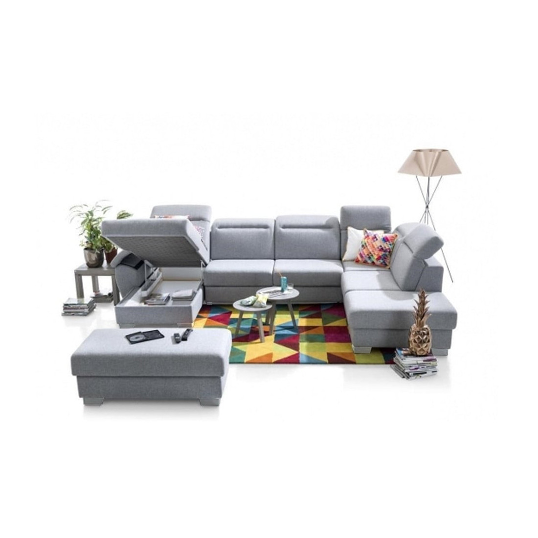 Coltar U Extensibil Cu Lada Dax, Tetiere Reglabile, 375 Cm