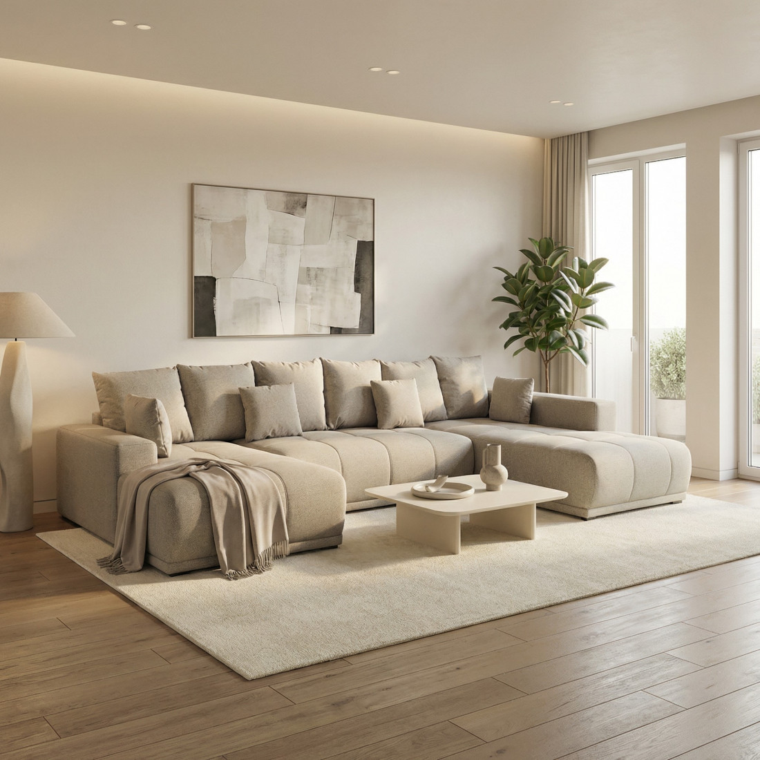 Cu forma sa inconfundabilă de U, acest colțar extensibil maximizează spațiul disponibil și îți permite să te bucuri de o zonă de conversație amplă și confortabilă. Poți invita prietenii și familia să se așeze confortabil pe acest colțar generos și să petreceți timp de calitate împreună.