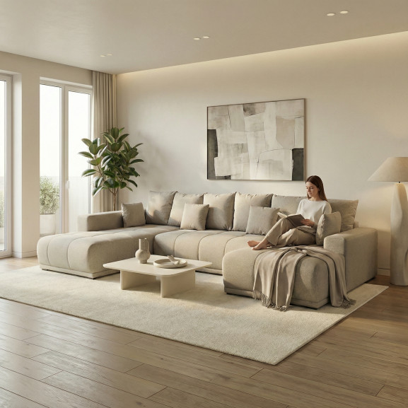 Colțarul extensibil Otis în forma de U este soluția ideală pentru a crea un spațiu de relaxare și socializare în locuința ta. Cu un design ingenios și o funcționalitate remarcabilă, acest colțar aduce un plus de eleganță și stil în orice living.