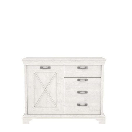 Comoda 1 Usa si 4 Sertare Kashmir, Alb Antichizat, 123  Cm-01