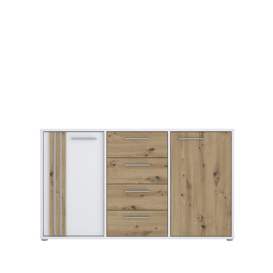 Comoda 2 Usi Si 4 Sertare Cordega Alb Si Stejar Artisan, 142.6 Cm
