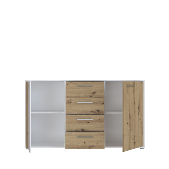 Comoda 2 Usi Si 4 Sertare Cordega  Alb Si Stejar Artisan, 142.6 Cm-01
