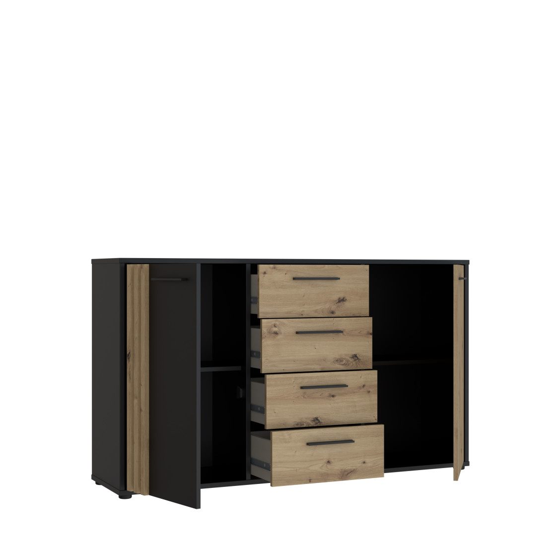 Comoda 2 Usi Si 4 Sertare Cordega Negru Si Stejar Artisan, 142.6 Cm-01