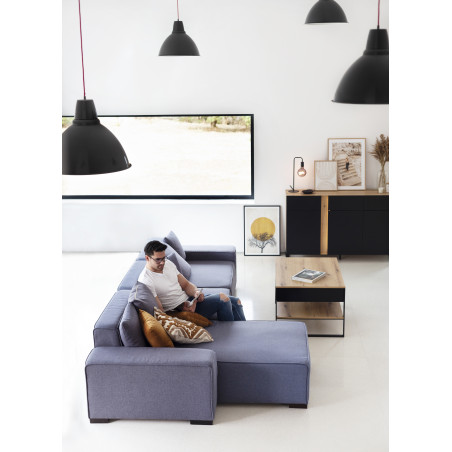 Comoda Minolta este o propunere elegantă și la modă pentru livingurile și sufrageriile moderne. Caracterul distinctiv al mobilierului se datorează picioarelor zvelte, metalice, negru profund, mat și unui decor care imită lemnul natural.