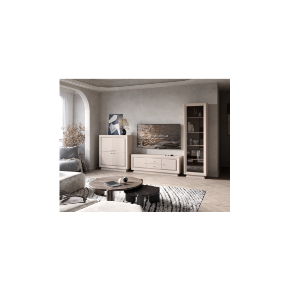 Comoda Loisir impresionează cu designul său modern și luciul său elegant, care adaugă strălucire oricărui decor. Cu patru usi spațioase, veți avea suficient loc pentru a organiza și a depozita obiectele personale, haine, sau accesorii, menținându-le la îndemână.