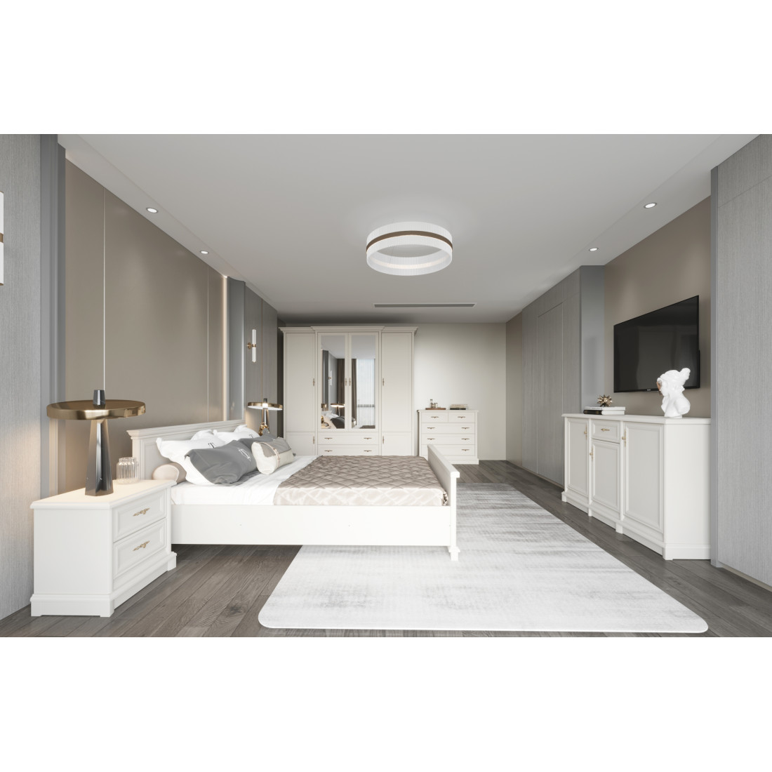 Cele cinci sertare oferă organizare practică pentru haine, accesorii sau obiecte personale, menținând ordinea și estetica ambientului. Finisajul kashmir conferă un plus de căldură și eleganță, transformând comoda într-o piesă centrală, funcțională și vizual plăcută.