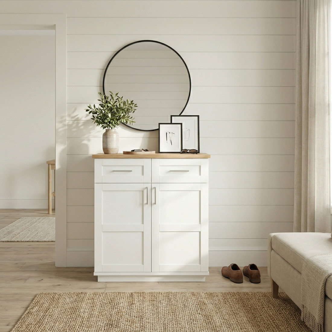 Comoda Alpina 2 Usi Si 2 Sertare, Vopsit Alb, Furniruit, 89.5 Cm-01