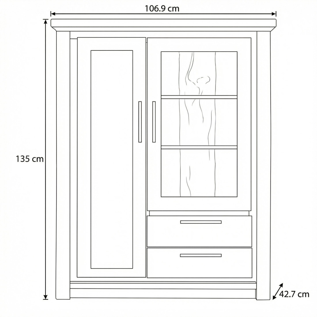 Dreapta: 1 Ușă cu sticlă (sus) + 2 Sertare suprapuse (jos).