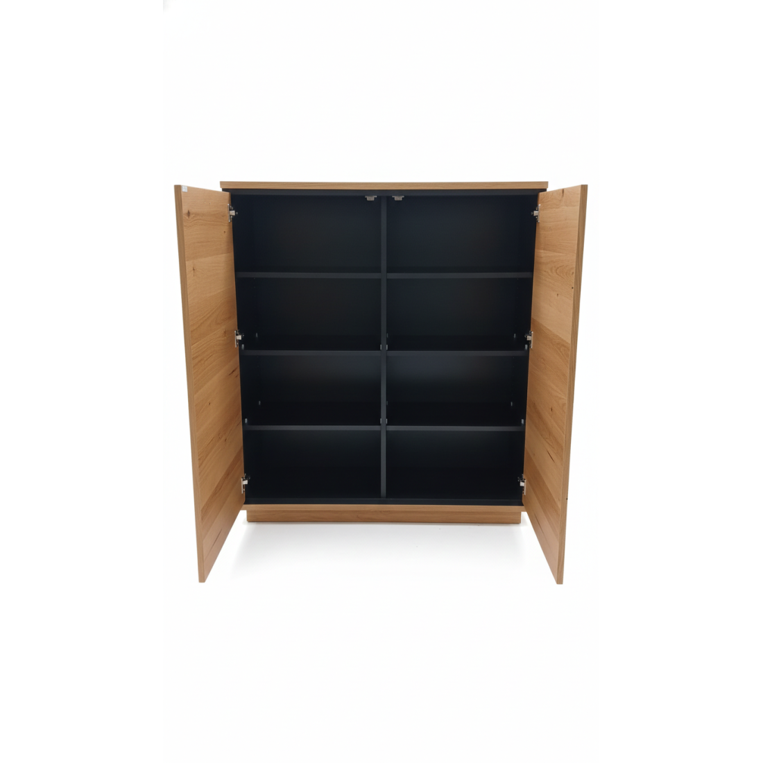 Compartimentare: 2 uși mari care ascund polițe interioare pentru o organizare eficientă.