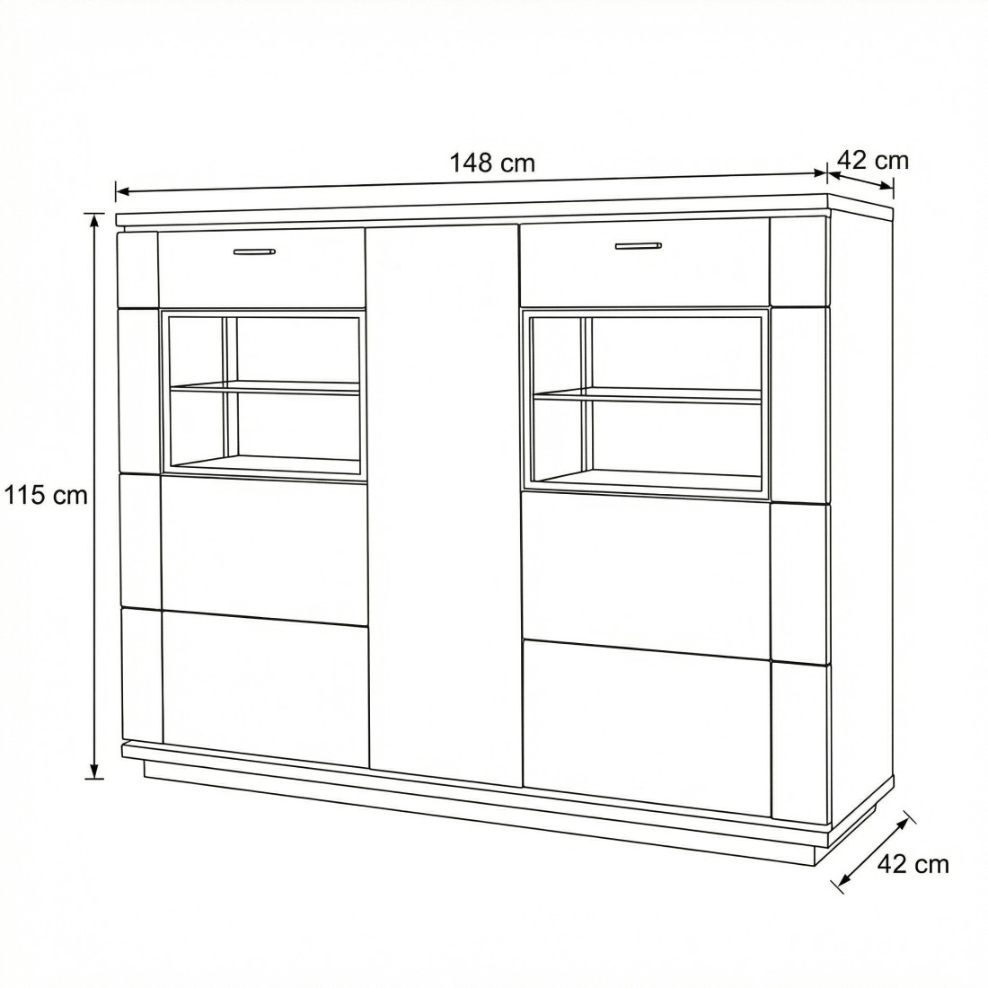 Dimensiuni Generoase: Lățime 148 cm x Înălțime 115 cm x Adâncime 42 cm – înălțimea de 115 cm este ideală pentru servire (bar) sau expunere decorativă.