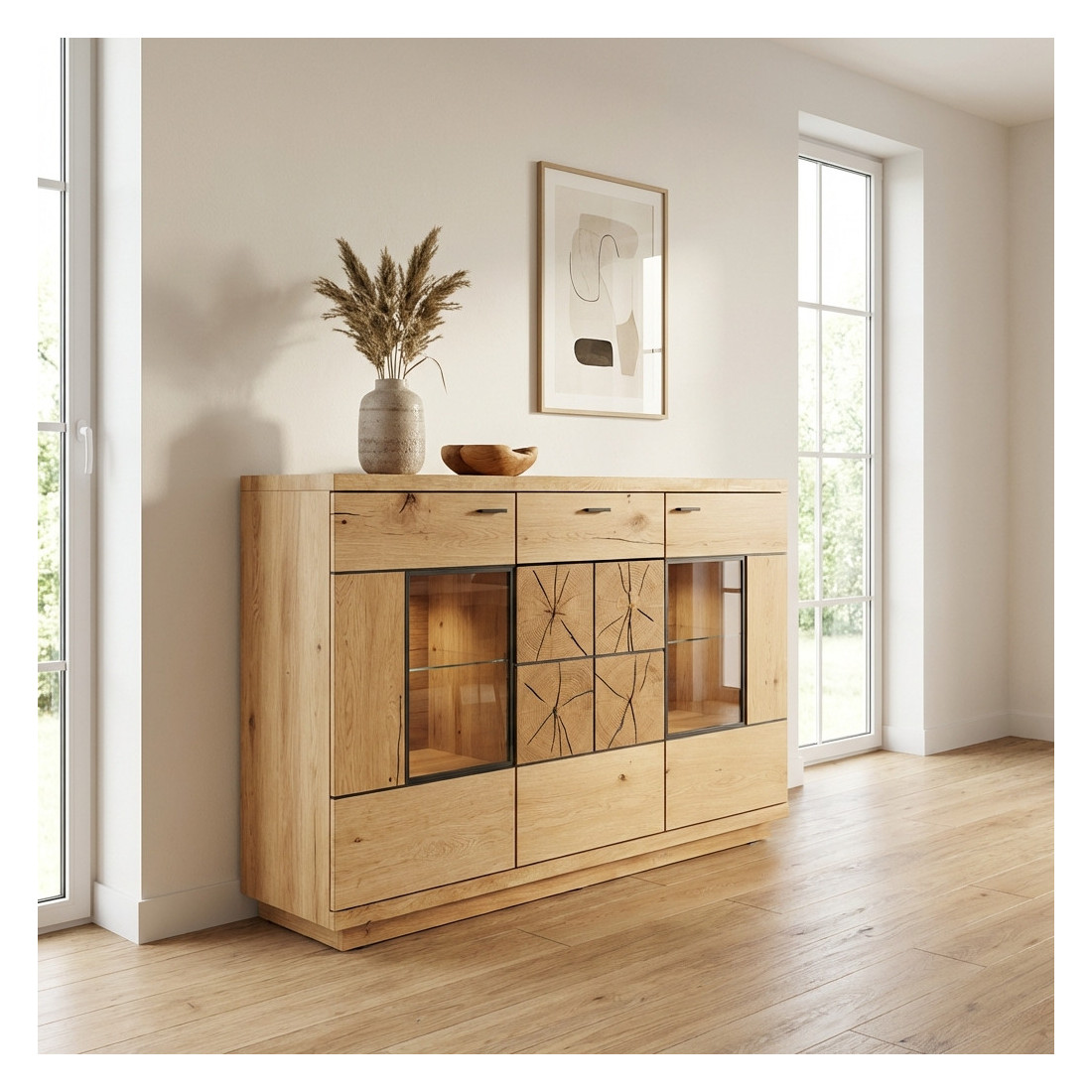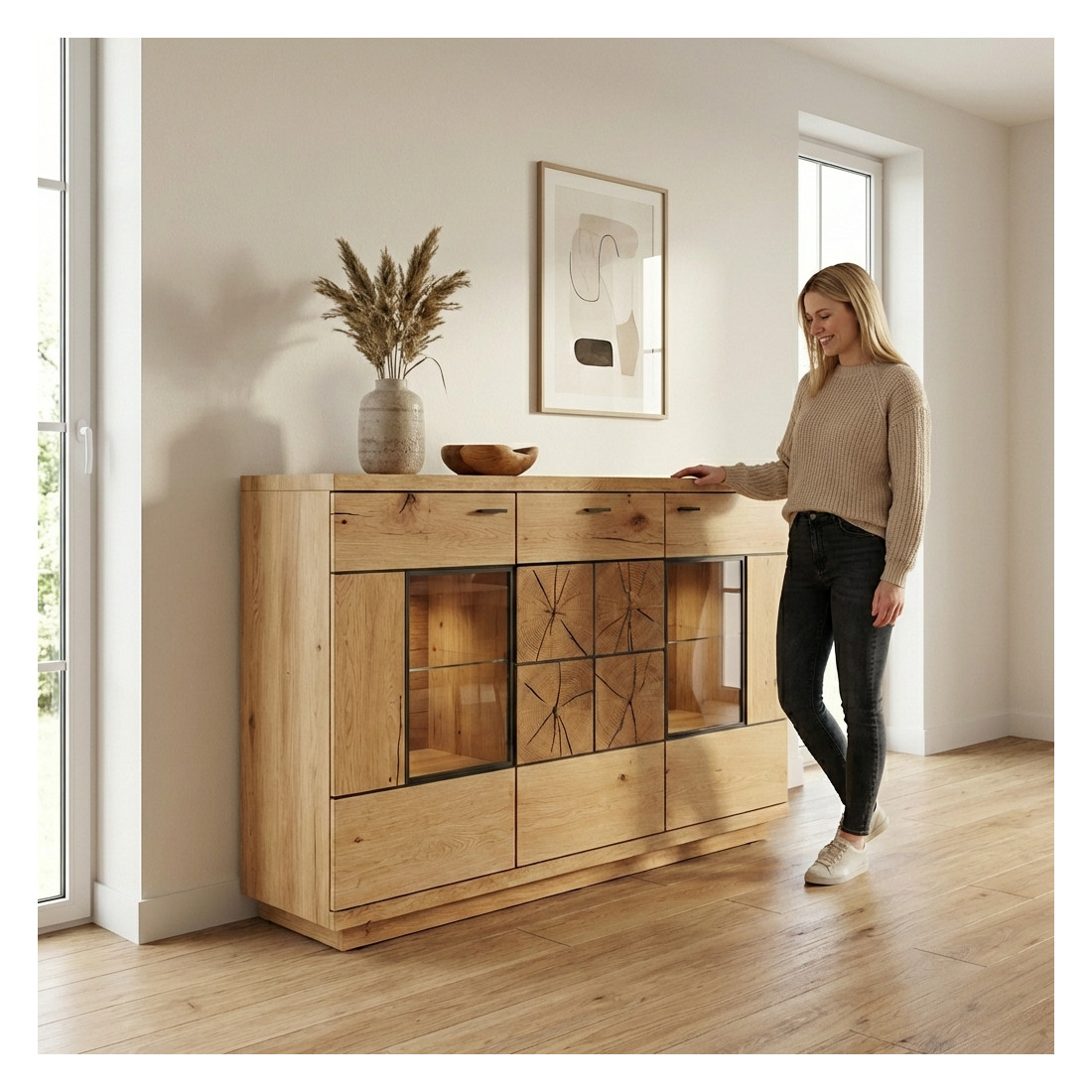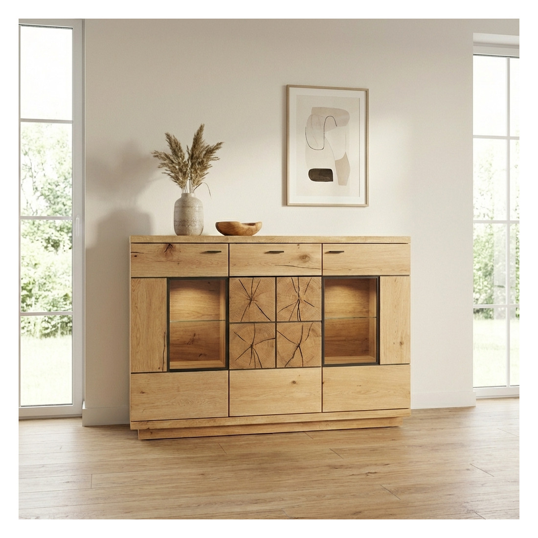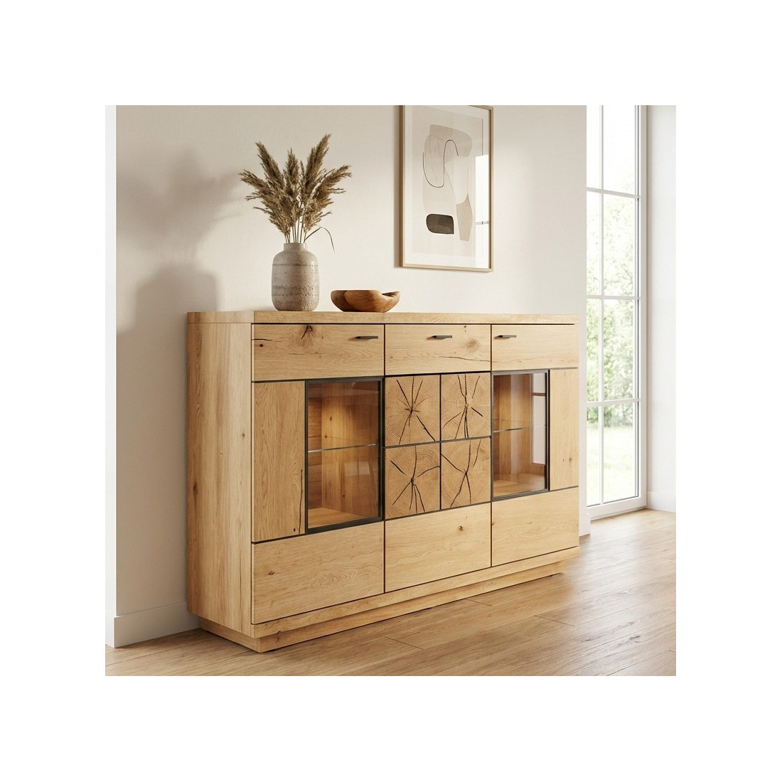 Comoda Bar Dakota Lungime 151.6 cm, Furnir Stejar Salbatic, Living, Decor Usi din Trunchi Natural, Inchidere Silentioasa