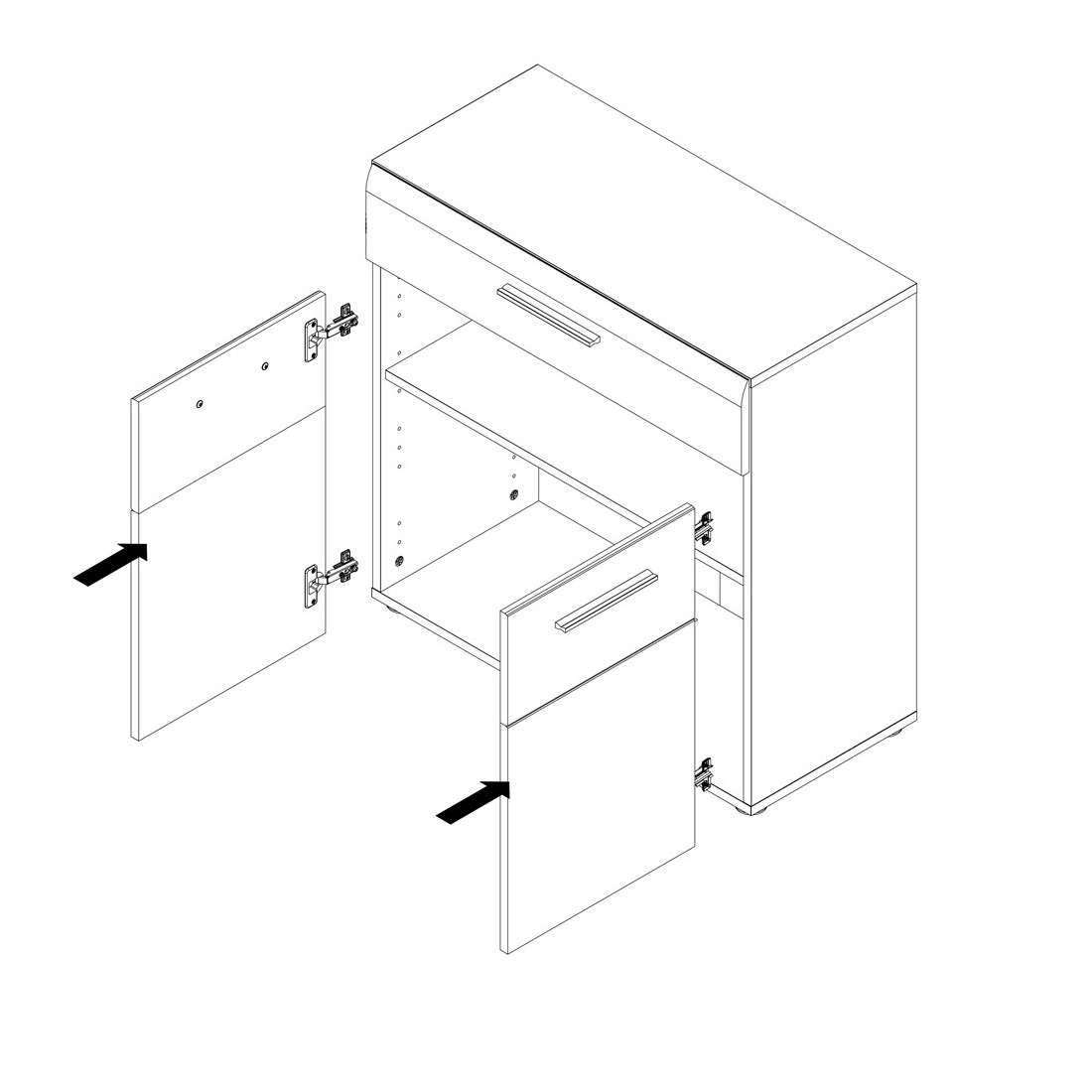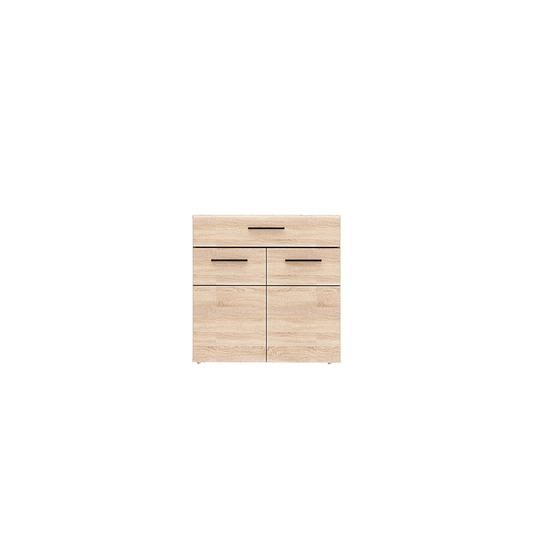 Comoda Complexity este o piesa de mobilier complex, ce poate servi drept spatiu suplimentar de depozitare si piesa decorativa (spatiu pe care pot fi expuse plante, fotografii, lumanari etc.) in acelasi timp. Finisaj: Stejar Sonoma + Stejar Denver. Comoda Complexity este realizat pe structura de placi aglomerate din lemn, folie structurala si din placi imbinate.