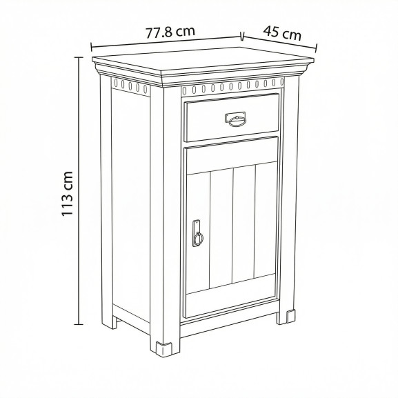 Cu dimensiunile de lățime 77.8 cm x adâncime 45 cm x înălțime 113 cm, comoda Saint Tropez este compactă, dar foarte practică — potrivită chiar și pentru spațiile mai restrânse, fără a renunța la stil și utilitate.