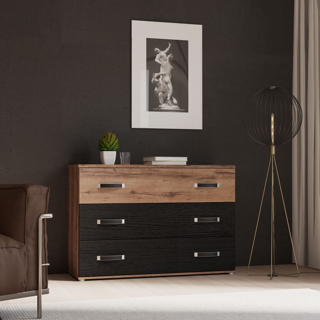 Comoda Cu 3 Sertare Rondino, Black Oak Mud Oak, 120.4 Cm