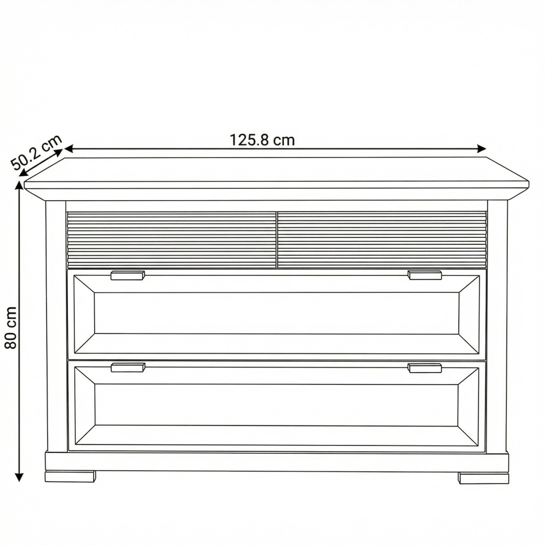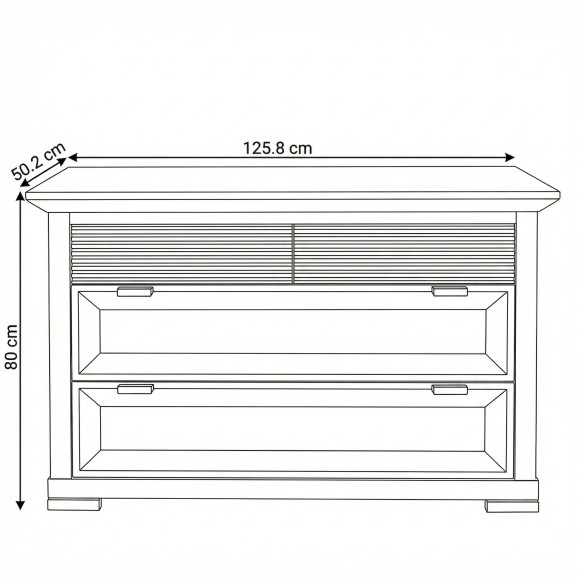 Comoda in partea superioara are doua sertare mici cu sistem de deschidere Push To Open, avand si un design unic, iar cele doua sertare mari ofera suficient spatiu pentru o organizare cat mai eficienta a articolelor sau accesoriilor vestimentare.
