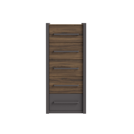 Descoperă eleganța și funcționalitatea perfectă cu Comoda Delicate cu 5 sertare. Această piesă de mobilier reprezintă o soluție inteligentă pentru organizarea și depozitarea eficientă a obiectelor în casă. Comoda Delicate se remarcă prin design-ul său modern și culorile elegante, incluzând antracit, stejar Justus și gri Wolfram Uni. Cu 5 sertare spațioase, această comodă oferă suficient loc pentru a organiza hainele, accesorii și alte obiecte personale. Realizată din plăci aglomerate din lemn, comoda este rezistentă și ușor de întreținut, având manere metalice elegante. Fiecare sertar este prevăzut cu un mecanism de deschidere completă și închidere "soft", oferindu-ți o experiență plăcută și silențioasă la utilizare.