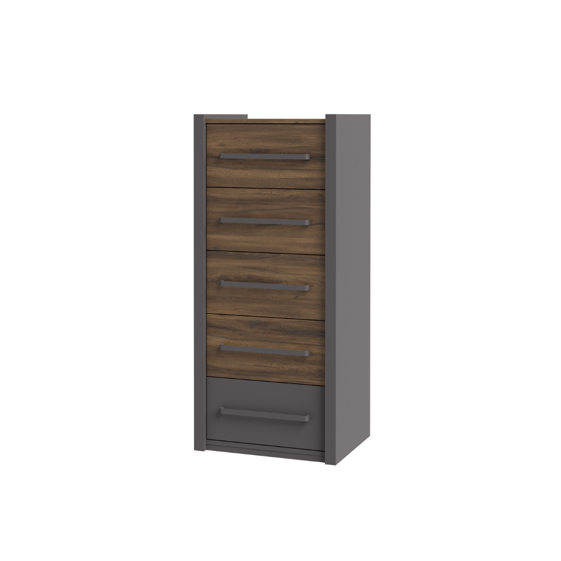 Comoda Cu 5 Sertare Delicate, Stejar Justus Si Gri Wolfram Uni, 47.6 Cm