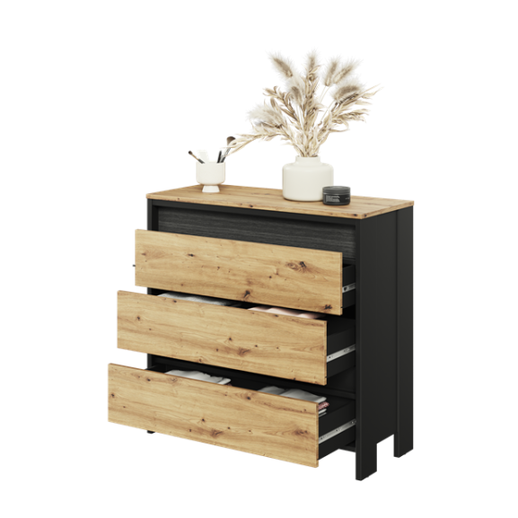Comoda Dot Cu Iluminare Cu 3 Sertare, Negru Stejar Artizanal, 91.6 Cm-01