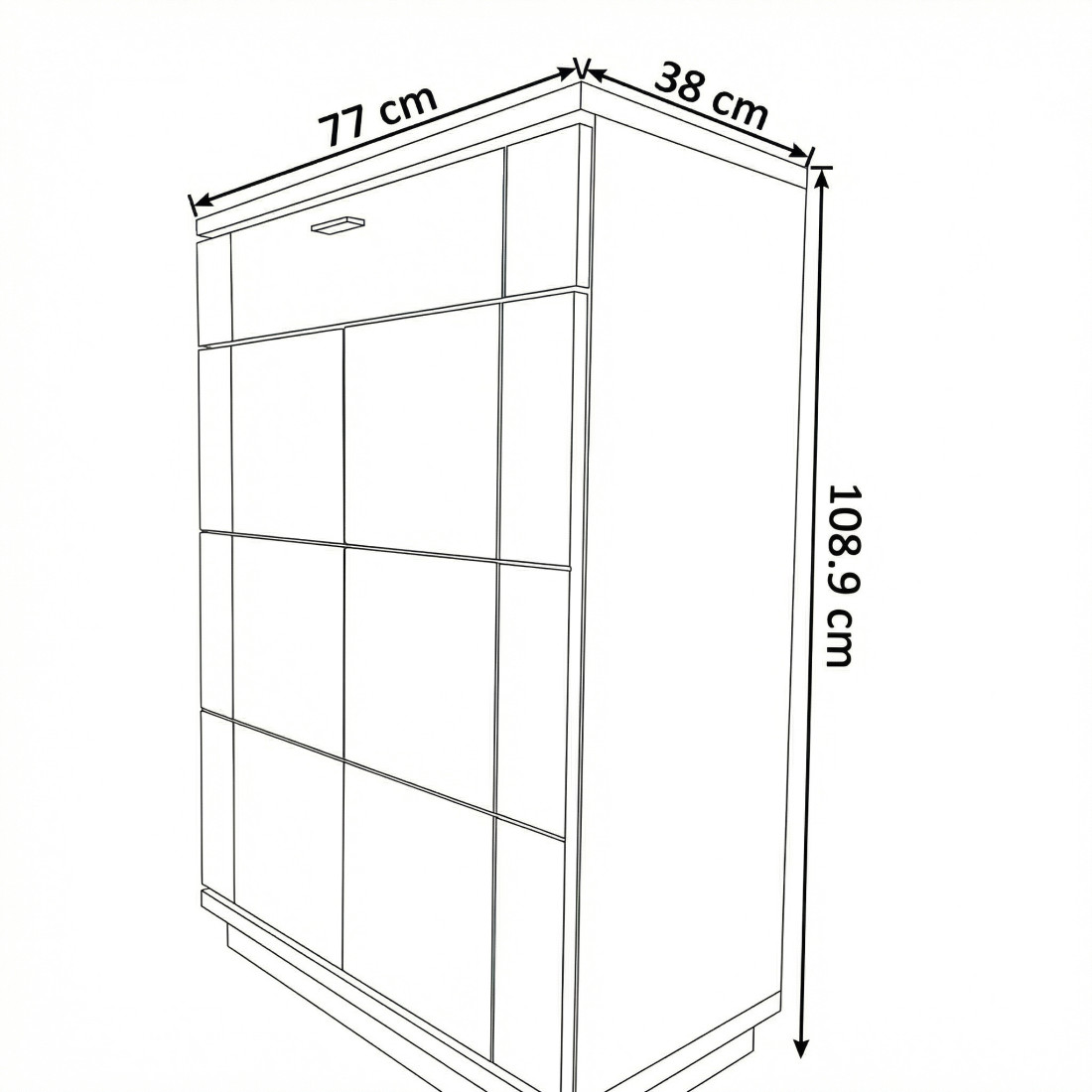 Dimensiuni: Lățime 77 cm x Adâncime 38 cm (ideal pentru holuri) x Înălțime: 108.9 cm