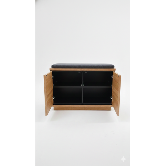 Transformă intrarea în locuință într-un spațiu primitor și organizat cu Comoda de Hol Zenith. Această piesă ingenioasă combină utilitatea unui pantofar cu confortul unei bănci, fiind dotată cu o pernă tapițată în nuanța Gri Antracit, rezistentă la uzură și plăcută la atingere.