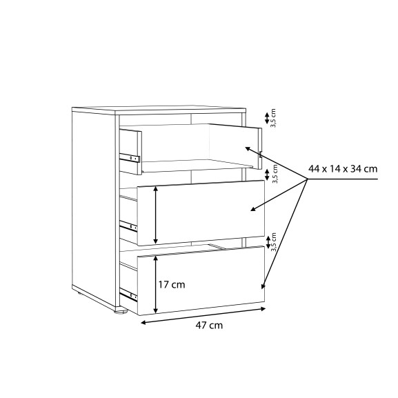 Comoda Aristyda este concepută pentru a se potrivi perfect în dulapurile existente, oferind spațiu de depozitare suplimentar. Cele 3 sertare îți permit să-ți organizezi hainele, lenjeria sau alte obiecte personale într-un mod ordonat și accesibil.