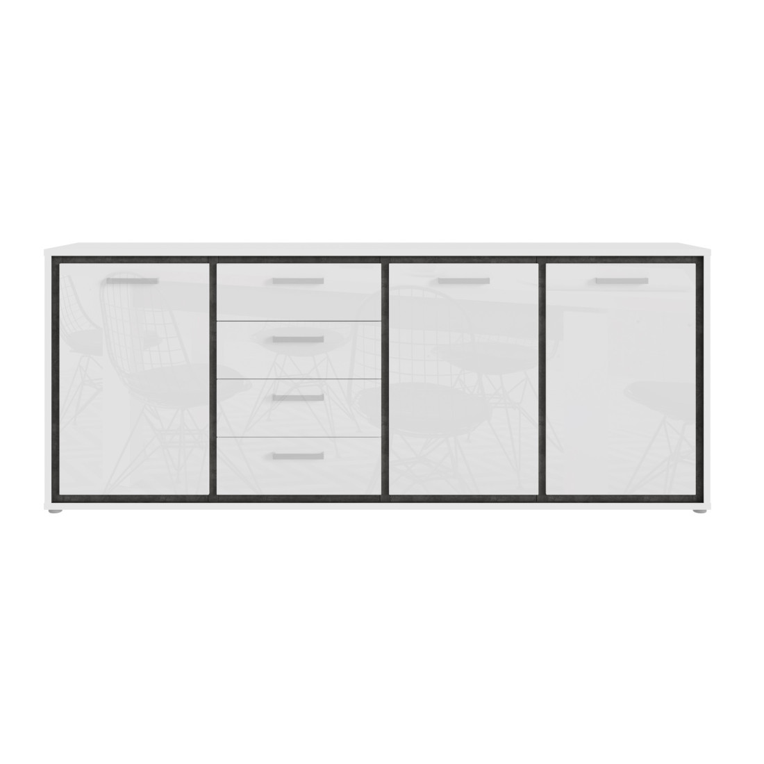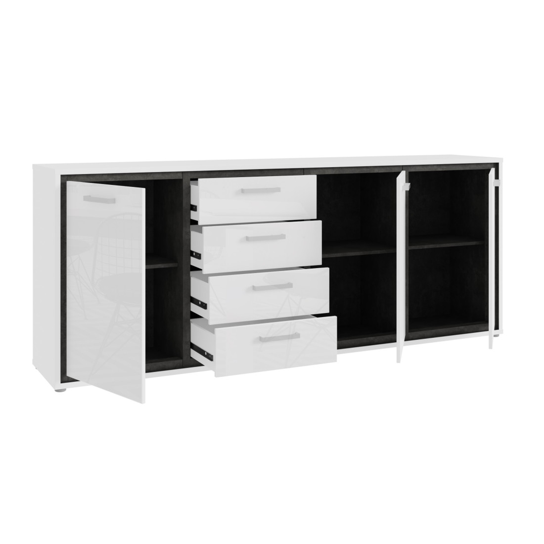 Comoda Rigmor, 3Usi + 4Sertare, Alb Super Lucios & Beton Optic Gri, 88 x 41.5 x 220 Cm