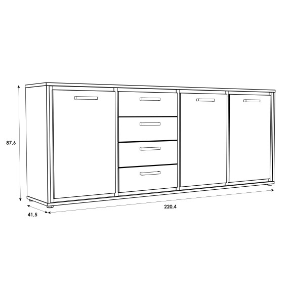 Comoda Rigmor, 3Usi + 4Sertare, Alb Super Lucios & Beton Optic Gri, 88 x 41.5 x 220 Cm-01