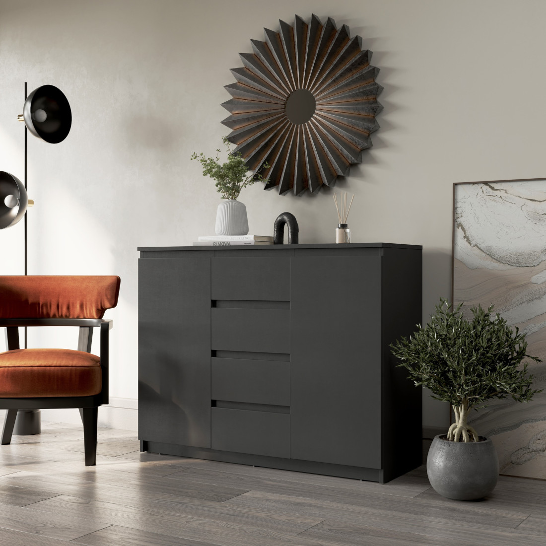 Comoda Thea Cu 2 Usi Si 4 Sertare, Negru, 109 Cm