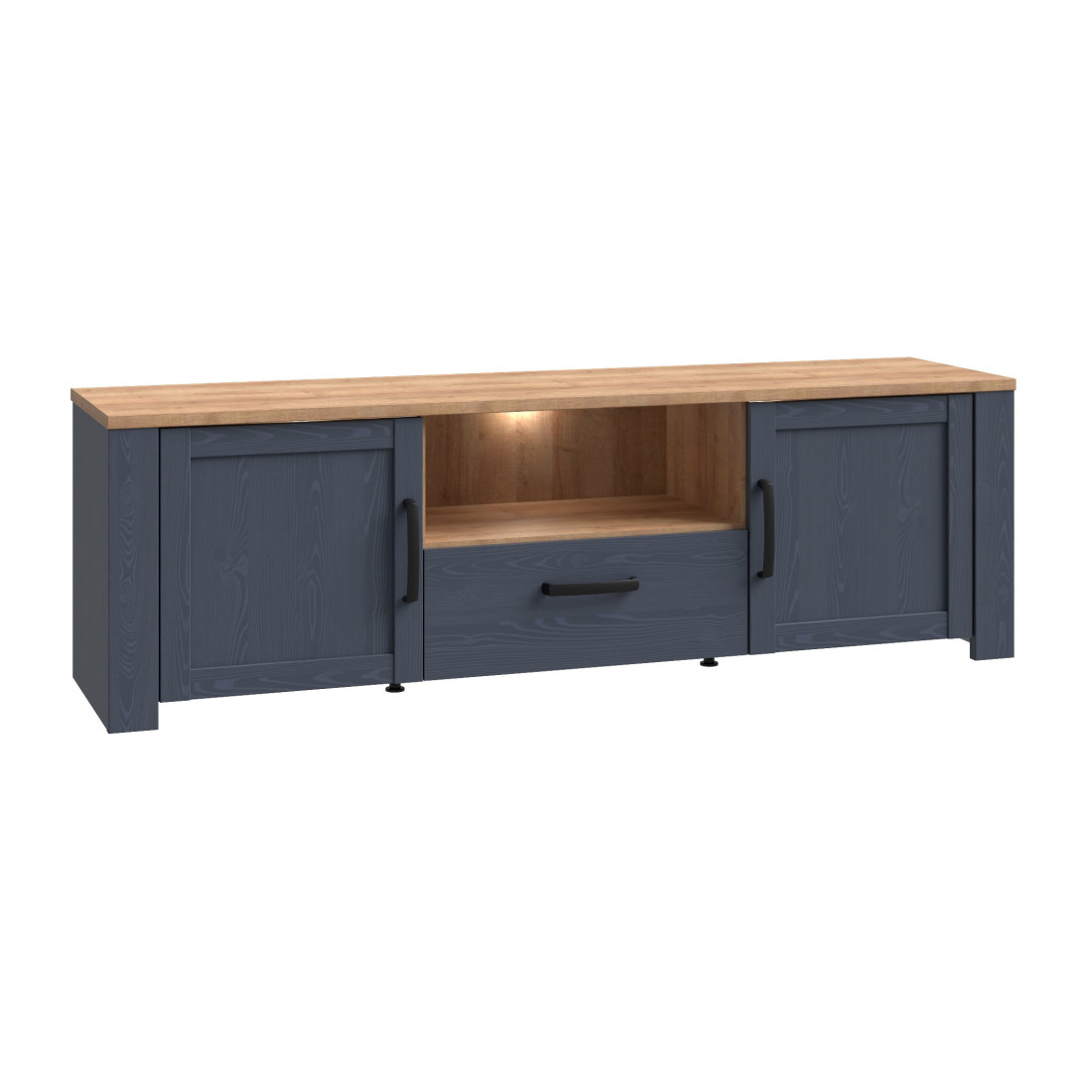 Comoda Tv Boho, Stejar Riviera & Stejar Bleumarin, 166,1 x 51,8 x 42 Cm