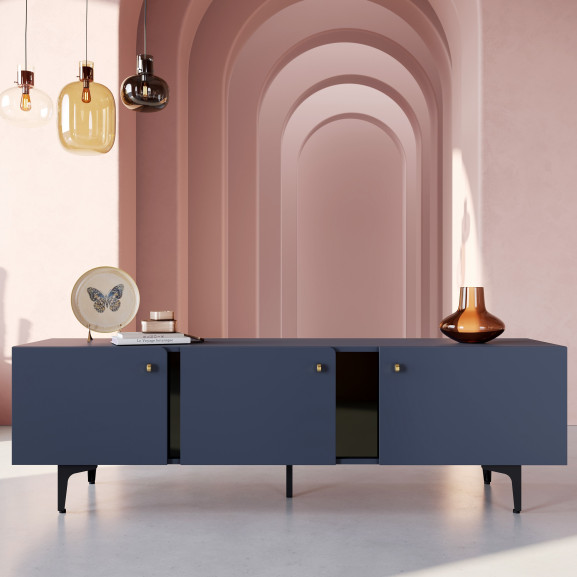 Comoda Tv Cato Cu 3 Usi, Bleumarin, 165 Cm-01