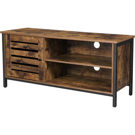 Comoda Tv Cu 1 Usa Si 2 Rafturi, Maro Rustic Și Negru, 110 Cm-01