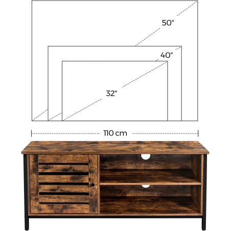 Comoda Tv Cu 1 Usa Si 2 Rafturi, Maro Rustic Și Negru, 110 Cm