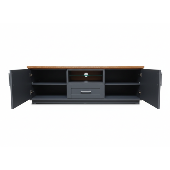 Comoda Tv Cu 2 Usi, 1 Sertar Si 1 Nisa Alpina Graphit Matt, Alb Si Natur, 165 Cm