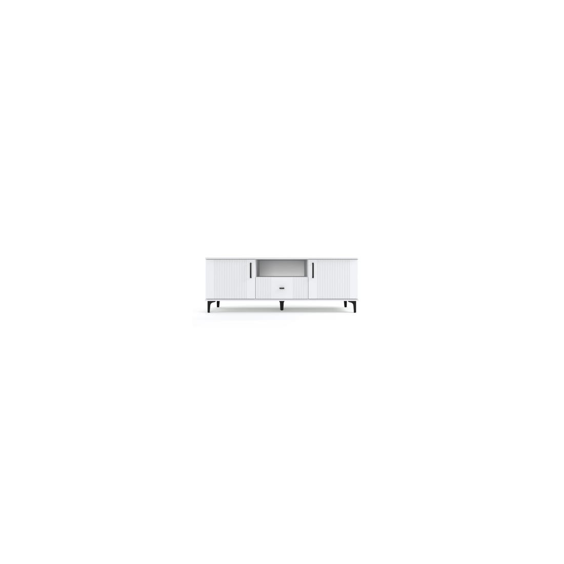 Descriere: Transformă-ți zona de entertainment într-un spațiu demn de reviste cu Comoda TV Alora. Designul său minimalist, dar plin de caracter, aduce un echilibru vizual perfect în living: finisajul alb mat oferă luminozitate, în timp ce fronturile riflate (cu striații verticale) adaugă acea textură arhitecturală care scoate piesa din anonimat.