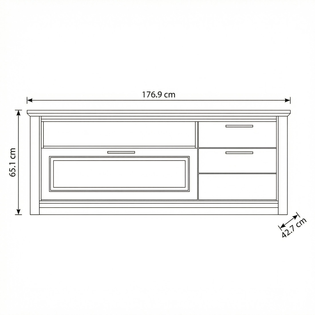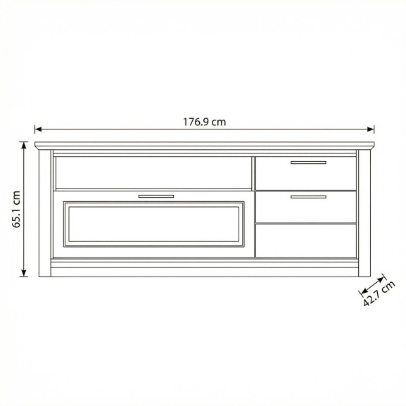 Dimensiuni XL: Lățime 177 cm x Adâncime 42.7 cm x Înălțime 65.1 cm – înălțimea de 65 cm este optimă pentru o vizionare confortabilă.