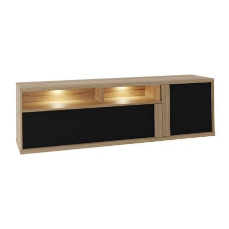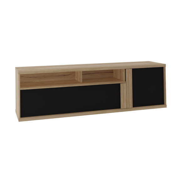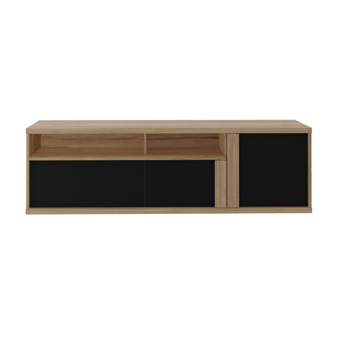 Comoda TV Elatha se integrează perfect în orice decor interior, datorită nuanței sale elegante de Stejar Catania și fronturilor negre super lucioase, care adaugă un nivel superior de rafinament.