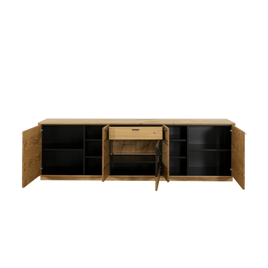 Comoda Tv Urbano Oak Cu 4 Usi Si 1 Sertar, Stejar Rustic Si Negru, 230 Cm