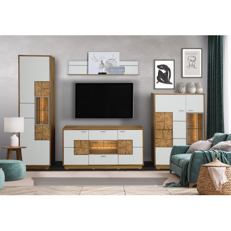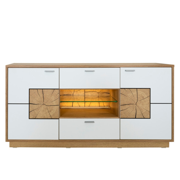 Comoda Tv Urbano White Cu 2 Usi, 2 Sertare Si 1 Nisa Alb Si Natur, 140 Cm