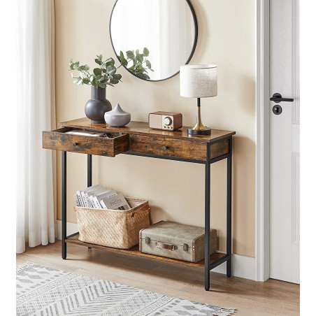 Consola Cu 2 Sertare, Vintage Maro Si Negru, 100 X 30 Cm