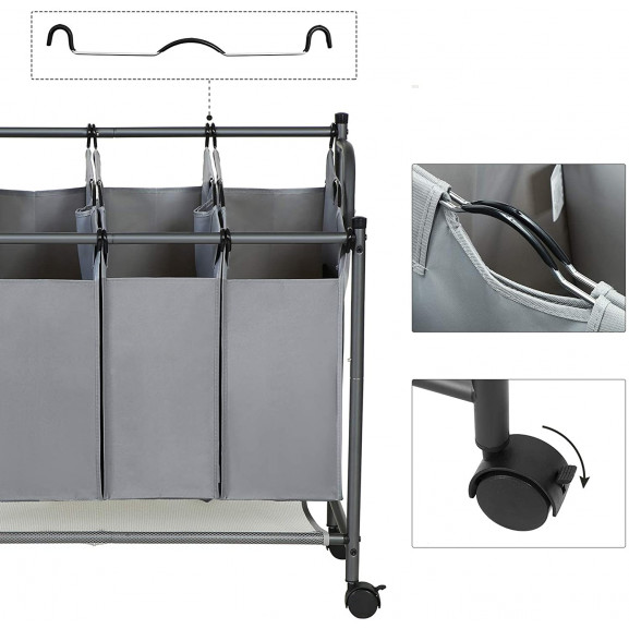 Cos De Rufe Cu Roti, Gri, 87.5 x 38.5 x (67-81) cm