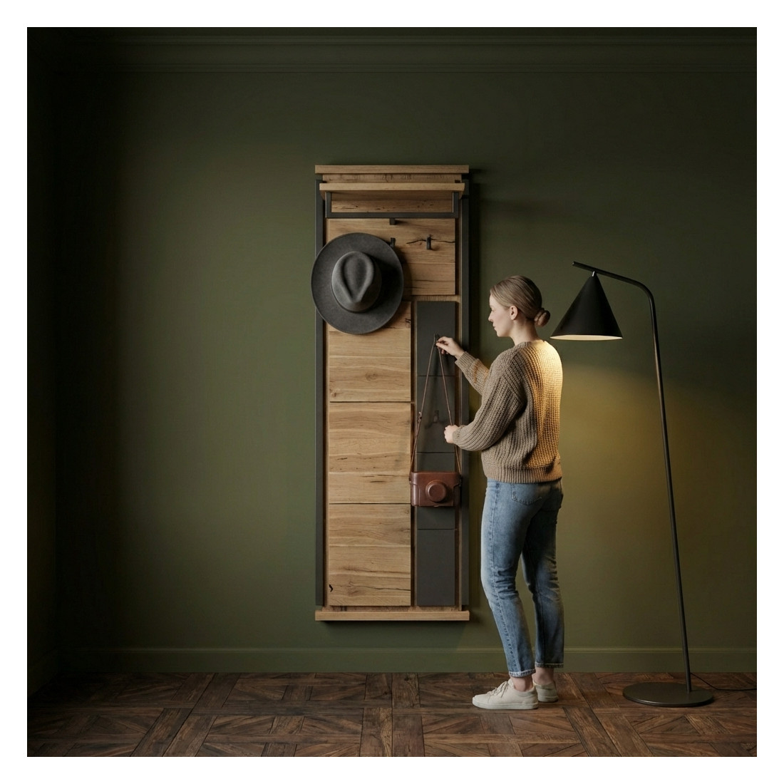 Transformă spațiul tău cu Cuierul Reno Smoked Oak și adaugă un plus de stil și utilitate. Achiziționează acum pentru a beneficia de eleganță și calitate într-un singur produs!