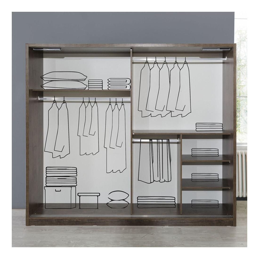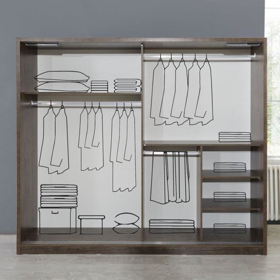 Dulap: 2500 x 2180 x 600 mm.; Pat: 1920 x 600 x 2060 mm.; Noptiera: 580 x 400 x 410 mm.; Comoda 3S cu oglinda: 1200 x 1560 x 410 mm.; Comoda 5S: 550 x 1200 x 410 mm.; Puf 290 x 290 x 420 mm.