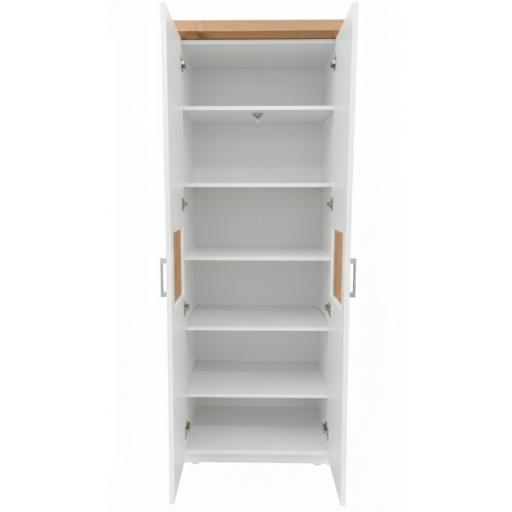 Acest detaliu estetic transformă un simplu spațiu de depozitare într-o piesă de design. Cu o lățime compactă de 75 cm, dulapul se integrează ușor în holuri sau dormitoare mici, oferind în spatele celor două uși un spațiu generos pentru organizarea hainelor sau a accesoriilor, ferite de praf.