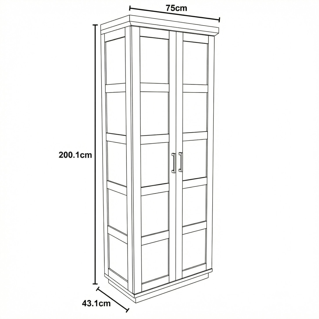 Dimensiuni: latime: 75 cm, inaltime: 200, adancime: 43 cm;