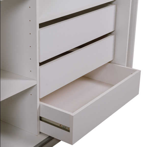 Fabricat din materiale de calitate, dulapul Phoenix oferă durabilitate și rezistență pe termen lung. Ușile culisante asigură economisirea spațiului și facilitează accesul rapid la toate articolele dumneavoastra de îmbrăcăminte și accesorii. Indiferent dacă aveți nevoie de un spațiu generos pentru hainele dumneavoastra sau doriți să organizați eficient articolele personale, acest dulap vă va îndeplini toate cerințele.