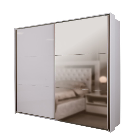 Dulap 2 Usi Culisante Phoenix, Alb Lucios, 249 Cm