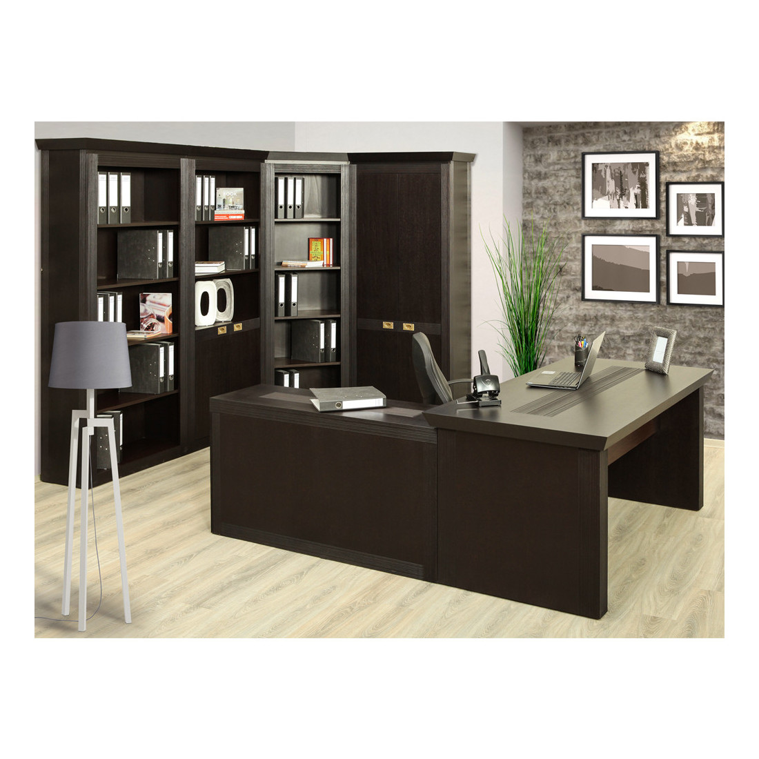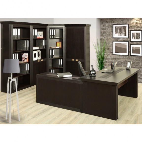 Office Saigon este realizat din placi aglomerate de lemn innobilate cu furnir de STEJAR. Constructie nedemontabila.